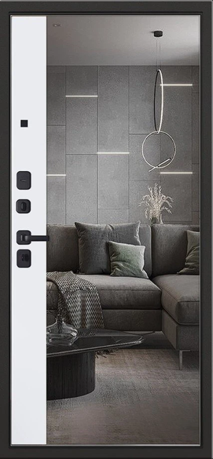 Надежная входная Дверь Scandi с зеркалом премиум класса по цене 46 160 руб. Большая толщина стали защитит от проникновения в ваш дом, квартиру или коттедж. Используется очень качественная фурнитура: замки, цилиндры, ручки, защелки. Покрытие и отделка двери изготовлено под внимательным контролем производителя. Дверь имеет долгий срок службы и гарантию.