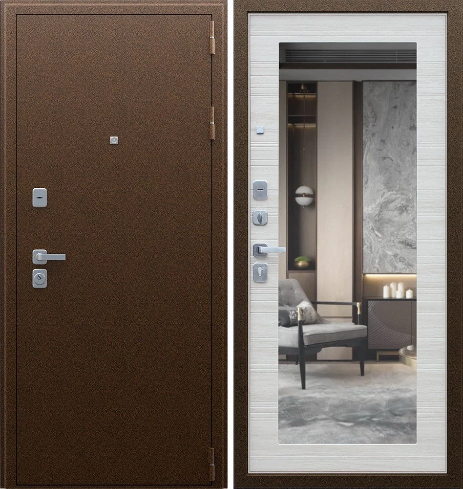 Надежная входная Дверь Спартак с зеркалом Акация Светлая Поперечная премиум класса по цене 37 360 руб. Большая толщина стали защитит от проникновения в ваш дом, квартиру или коттедж. Используется очень качественная фурнитура: замки, цилиндры, ручки, защелки. Покрытие и отделка двери изготовлено под внимательным контролем производителя. Дверь имеет долгий срок службы и гарантию.
