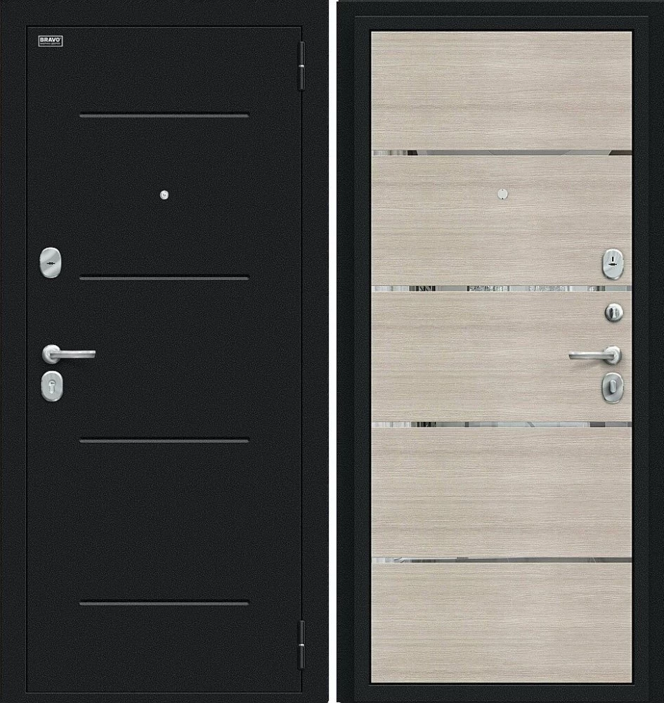 Надежная входная Дверь Браво Лайн Букле черное/Cappuccino Veralinga премиум класса по цене 30 930 руб. Большая толщина стали защитит от проникновения в ваш дом, квартиру или коттедж. Используется очень качественная фурнитура: замки, цилиндры, ручки, защелки. Покрытие и отделка двери изготовлено под внимательным контролем производителя. Дверь имеет долгий срок службы и гарантию.