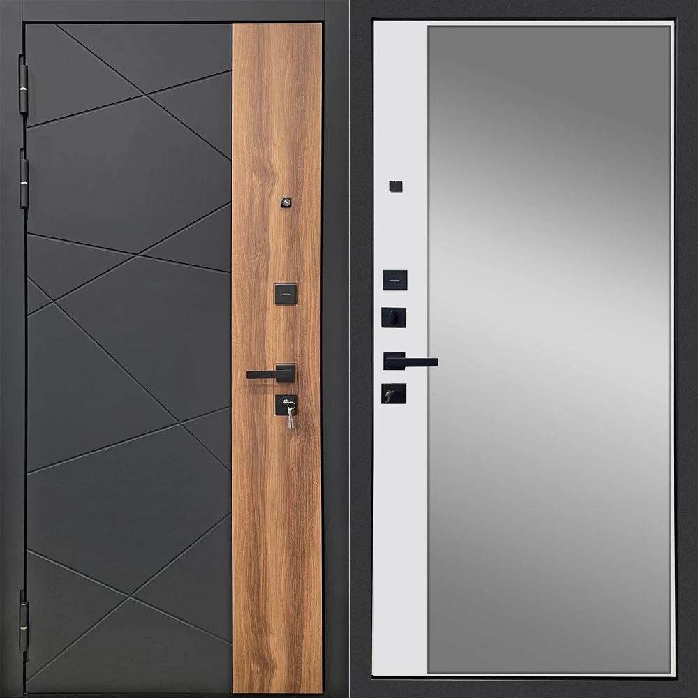 Дизайнерская входная Дверь Ратибор РАКУРС 3К ЗЕРКАЛО класса Люкс с несколькими листами стали, звукоизоляцией и теплоизоляцией. Утепленный короб и полотно защитят от сквозняков и шумов. Модель не только надежная, комфортная, защищенная и высочайшего качества, но и очень красивая! Будет отлично сочетаться с интерьером дома, квартиры или офиса. Сейчас действует выгодное предложение по цене: 56 410 руб.