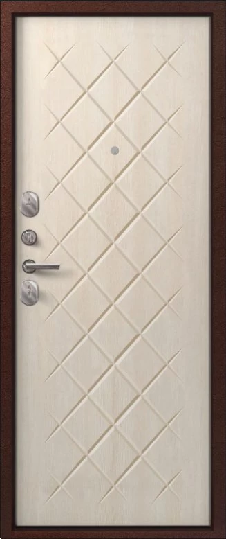 Надежная входная Дверь V-02 медь антик - седой дуб премиум класса по цене 37 710 руб. Большая толщина стали защитит от проникновения в ваш дом, квартиру или коттедж. Используется очень качественная фурнитура: замки, цилиндры, ручки, защелки. Покрытие и отделка двери изготовлено под внимательным контролем производителя. Дверь имеет долгий срок службы и гарантию.