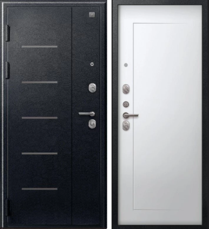 Надежная входная Дверь V-03 Черный муар - Кашемир белый премиум класса по цене 40 420 руб. Большая толщина стали защитит от проникновения в ваш дом, квартиру или коттедж. Используется очень качественная фурнитура: замки, цилиндры, ручки, защелки. Покрытие и отделка двери изготовлено под внимательным контролем производителя. Дверь имеет долгий срок службы и гарантию.