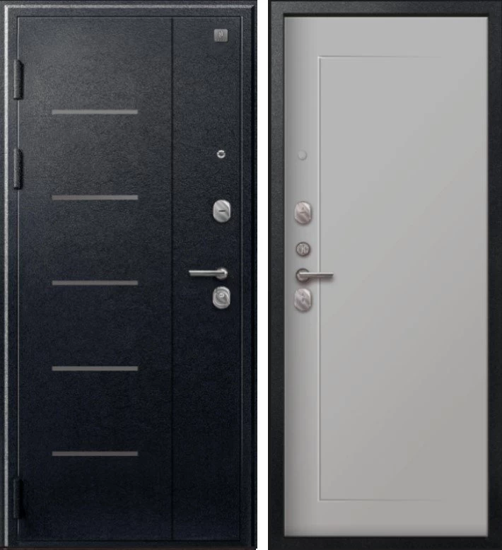 Надежная входная Дверь V-03 Черный муар - Кашемир сильвер премиум класса по цене 40 420 руб. Большая толщина стали защитит от проникновения в ваш дом, квартиру или коттедж. Используется очень качественная фурнитура: замки, цилиндры, ручки, защелки. Покрытие и отделка двери изготовлено под внимательным контролем производителя. Дверь имеет долгий срок службы и гарантию.